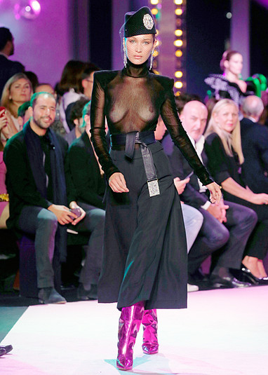Заработать на Белле решил и французский дизайнер Александр Вотье, доверивший именно Хадид демонстрировать «голые» образы на показе его новой коллекции в рамках Недели высокой моды в Париже.
