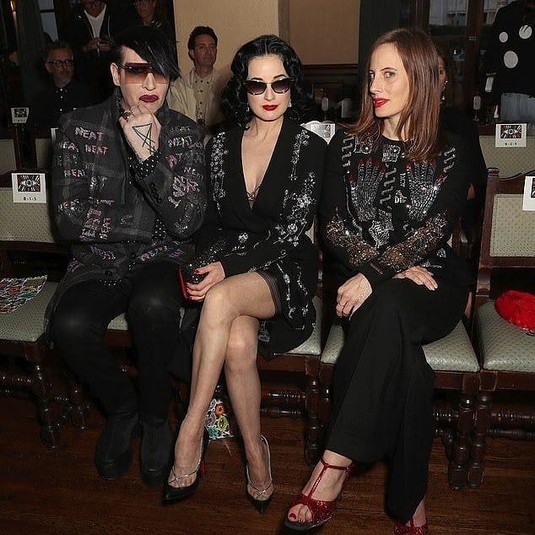 50-летний певец Мерилин Мэнсон и его бывшая жена, королева бурлеска, 46-летняя Дита фон Тиз в прошедшую пятницу были замечены вместе на показе осенне-зимней коллекции марки Libertine в Лос-Анджелесе. Пара, которая развелась в 2006 году, выглядела довольно счастливой. Некоторые пользователи сети даже предположили, что знаменитости снова сошлись. Звезды с радостью позировали фотографам вместе и даже выбрали наряды в одном стиле.
