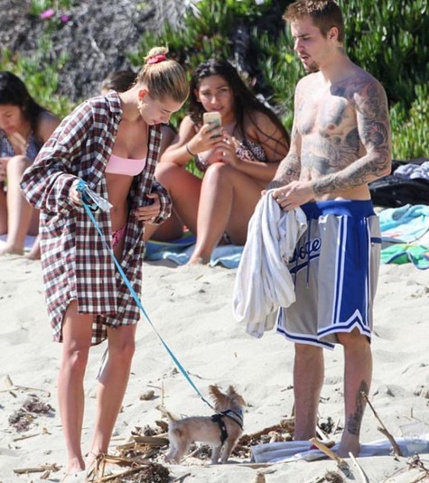 Знаменитый 25-летний певец Джастин Бибер отдохнул на общественном пляже вместе с 22-летней женой Хейли Бибер. Супруги взяли с собой и нового члена семьи - щенка йоркширского терьера.