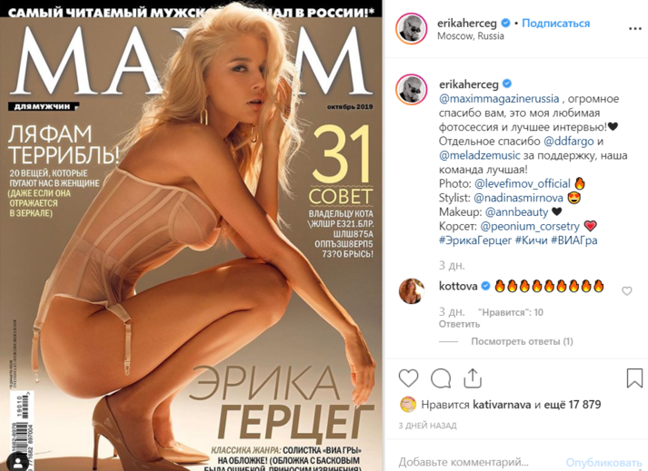 Сексуальная солистка группы «Виа Гра» Эрика Герцег снялась полностью обнаженной в новой фотосессии. Звезда приняла участие в съемке для мужского глянца Maxim, в которой продемонстрировала свои утонченные формы и изгибы тела в соблазнительных нарядах.