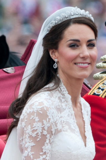 Пиппа Миддлтон не стала в качестве аксессуара использовать массивную тиару, а выбрала более скромный вариант от Robinson Pelham. Но Кейт, как известно, надела настоящую семейную ценность – тиару от Cartier, которая входит в личную коллекцию Елизаветы II. Кстати, изделия Robinson Pelham все же нашли свое место еще на свадьбе герцогини – она выбрала серьги этого ювелирного дома.