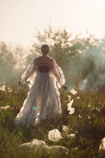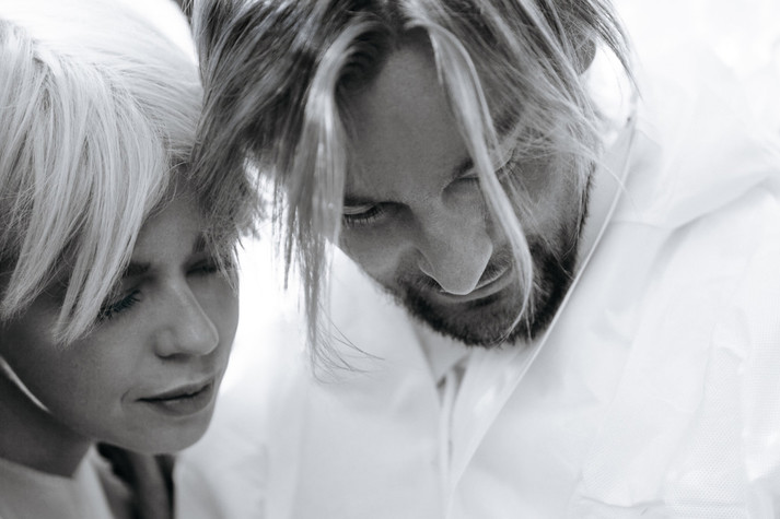 «Мы долго размышляли с Аланом о том, каким же должно быть платье. В итоге все началось с ткани - мы взяли сверхлегкую прозрачную плащевку, которая как будто парит в клипе. Чтобы платье было скульптурным, сделали каркас из сверхтонкого пластика - он подчеркнул крой и создал выразительный образ. Мне кажется, нам удалось провести параллель между техногенностью мира и уязвимостью человека в этом всем».