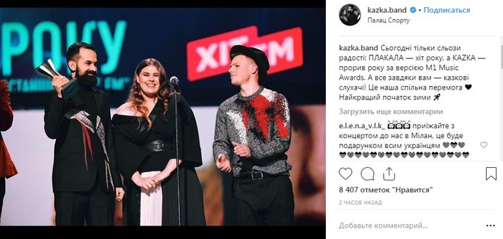 - Группа Kazka, которая покорила престижные музыкальные чарты, победила в номинации «Прорыв года».