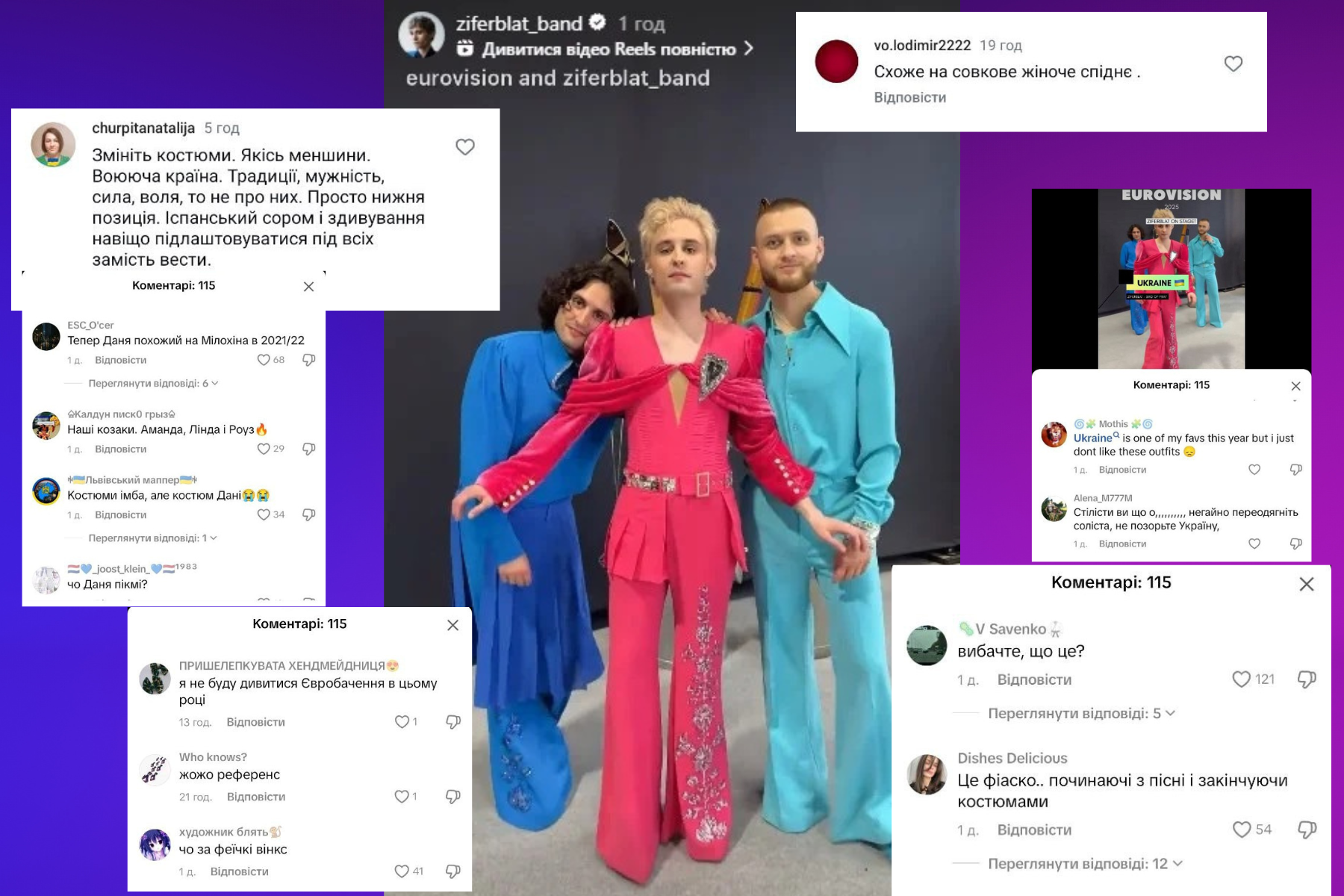 «Я не буду дивитися Євробачення в цьому році», – обурюється один з коментаторів у TikTok. «Змініть костюми. Якісь меншини. Воююча країна. Традиції, мужність, сила, воля, то не про них», – зазначає одна з коментаторів в Instagram.