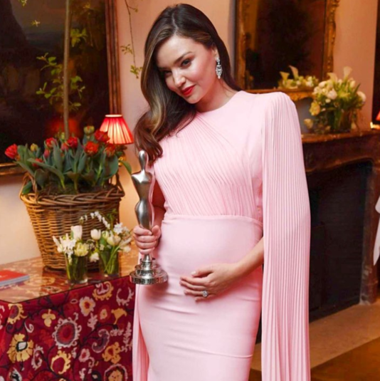 На красной дорожке звезда блистала в нежно-розовом платье в пол с эффектными рукавами-«крыльями». Фотографам Миранда позировала исключительно в «позе Меган Маркл» - придерживая уже немного округлившийся живот.