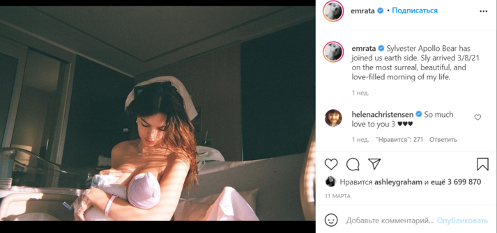 Поклонники осыпали инстадиву комплиментами. Многие не скрывали радости от того, что Эмили все-таки призналась, что у нее сын. «Вместе с красивой мамой», «Еще никогда я не хотел так сильно стать младенцем», «Материнская любовь — это так мило», «Счастливый мальчик», «Я думала, у твоего младенца не будет пола», «Ты же говорила, что малыш сам определится, кто он», — отметили фолловеры.