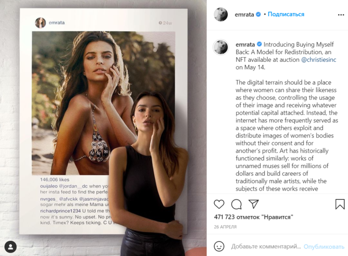 Ратаковски позировала для рекламной кампании своего бренда купальников Inamorata. Знойная брюнетка надела синее бикини, которое оставило минимум простора для воображения. Ткань едва прикрывала объемную грудь знаменитости. Она специально выбрала размер меньше своего. Часть бюста оказалась открытой.
