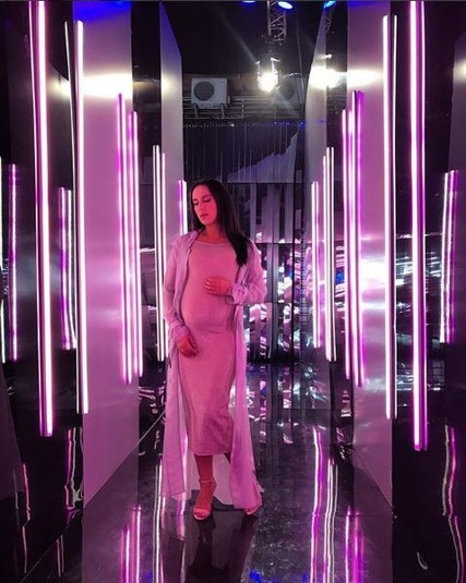 На них Джамала предстает в обтягивающем платье серебристого цвета, которое выгодно подчеркивает ее внушительный животик.