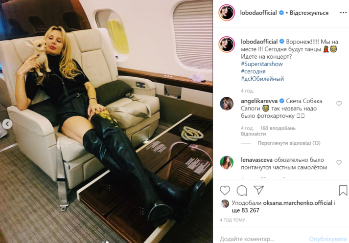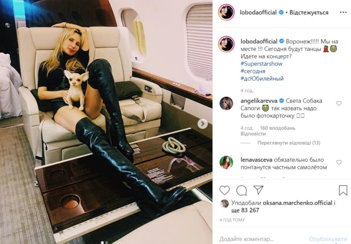 Компанию поп-диве составила маленькая собака породы чихуахуа, которую она нежно обнимала. Фанаты высоко оценили достоинства фигуры Светланы. Они осыпали ее восторженными комплиментами. Многие поинтересовались, живое ли животное или игрушечное.