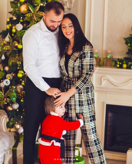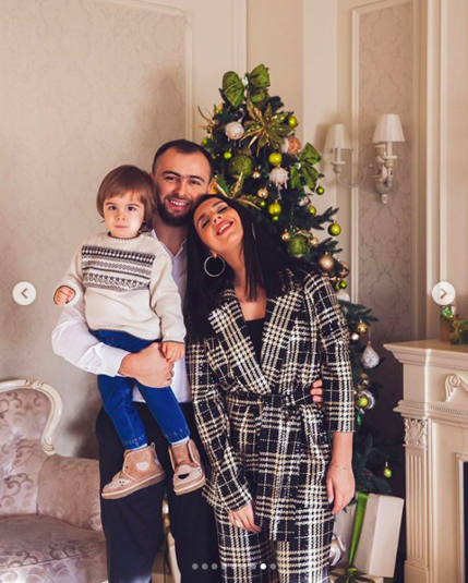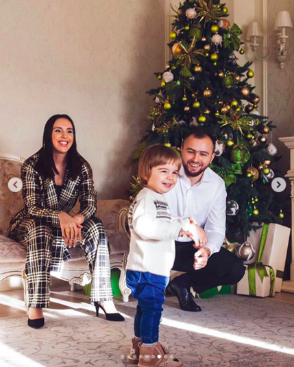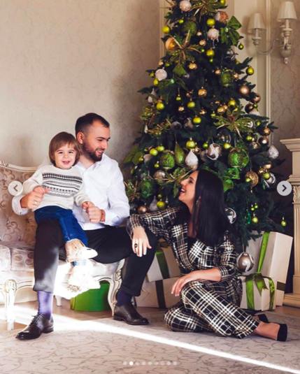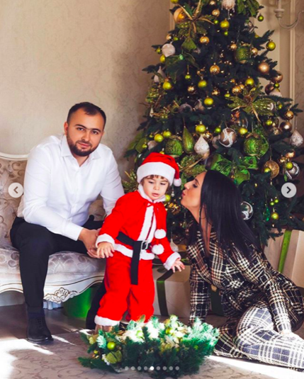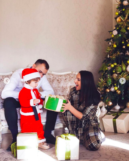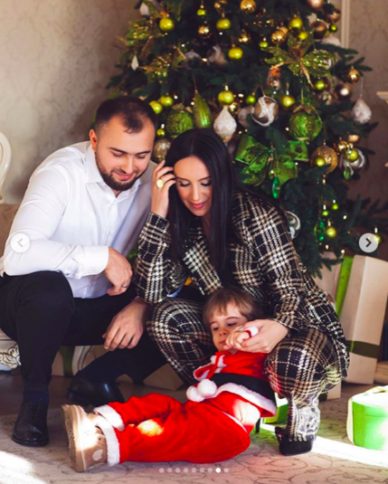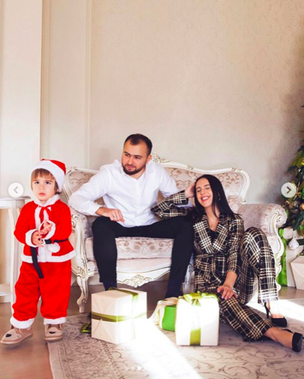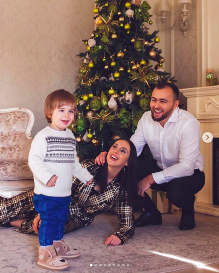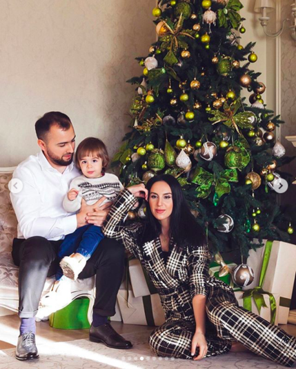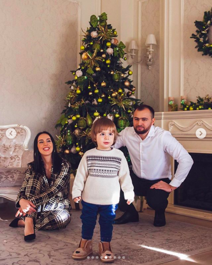 Певица в черно-золотом костюме позировала рядом с красиво украшенной елкой в компании близких мужчин. Маленький наследник Джамалы в белом свитере с узорами, синих джинсах и забавных ботиночках с удовольствием смотрел в камеру и счастливо улыбался родителям.
