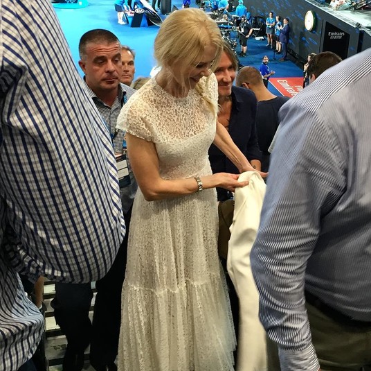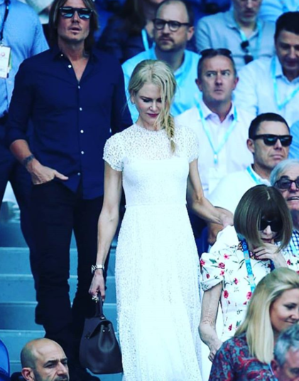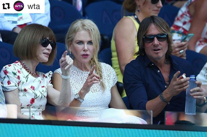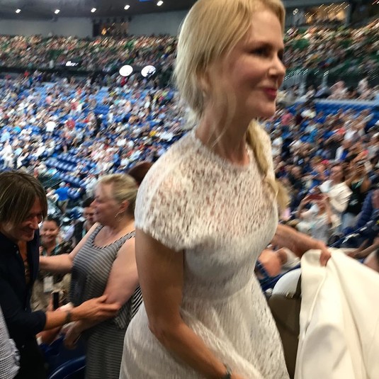 Во время турнира звездная пара сидела рядом с редактором Vogue Анной Винтур. Обе звезды находились в приподнятом настроении весь день, много смеялись и выглядели счастлиыми. Николь выглядела шикарно в великолепном белом кружевном платье и на каблуках, с волосами в косичке. Тем временем Кит был в темно-синей рубашке, темных джинсах и солнечных очках, передает Dailymail.