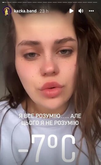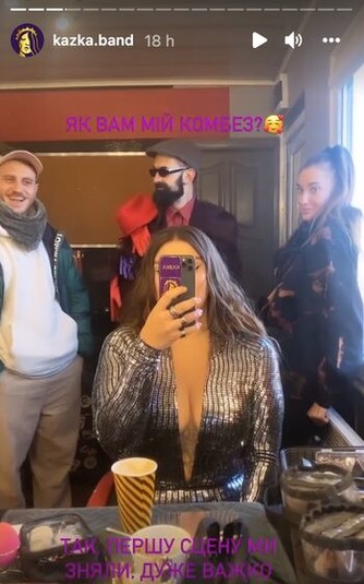 Популярная украинская певица, солистка группы Kazka Александра Зарицкая в Instagram Stories опубликовала видеофрагменты со съемок своего нового клипа. На видео артистка жалуется, что придется сниматься на улице в минусовую температуру, показывает, как ей наносят макияж, и демонстрирует фрагменты непосредственно со съемочной площадки, сообщает «Бульвар Гордона».