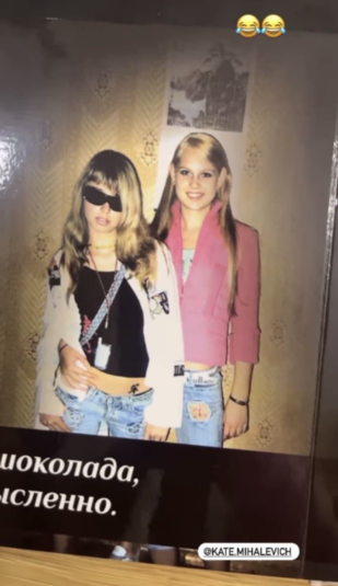 В своих Instagram-stories артистка опубликовала видео, на котором сняла две архивные фотографии. На них Дорофеева появилась со своей подружкой по имени Екатерина. Так, на первом фото девочки мило позируют в школьных формах с челками и собранными волосами.