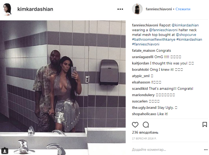 Однако поклонники мгновенно вспомнили, что в таком наряде ранее появлялись на публике супермодель Белла Хадид и звезда реалити Ким Кардашьян.