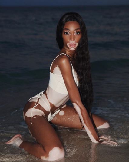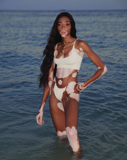 Модель Винни Харлоу, внешность которой считается экзотической благодаря витилиго (нарушения пигментации кожи), поделилась пикантными фото и видео из своей последней фотосессии, в которой она засветила самые соблазнительные части тела.
