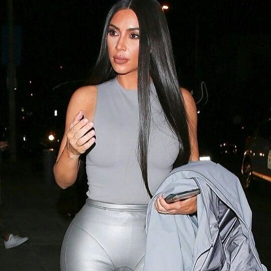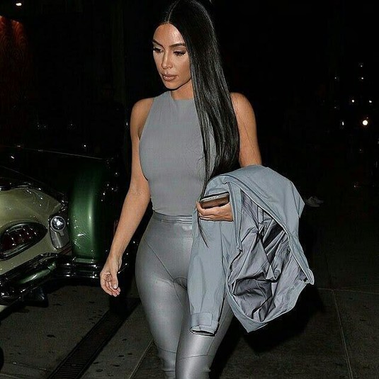 И выглядела Ким шикарно: для выхода звезда выбрала обтягивающие серебряные леггинсы и серый топ, подчеркивающий фигуру.