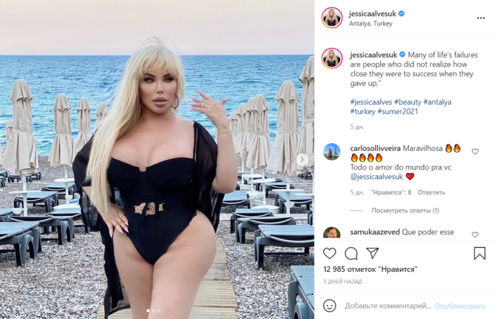 Первую операцию Джессика сделала в 19 лет после переезда из Бразилии в Великобританию, когда она еще мечтала стать похожей на куклу Кена. Более 10 ринопластик, бесконечные инъекции филлеров и липосакции — это только меньшее из всех зол. Джессика удалила себе нижние ребра ради тонкой талии, а также увеличила грудь и ягодицы. Еще будучи Кеном, она делала себе искусственный пресс и бицепсы. Все операции привели к печальному результату: звезда чуть не лишилась носа и не осталась с парализованными руками.
