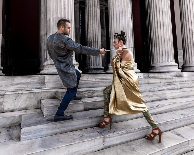 «Это самая нелепая ситуация, которая случалась со мной в жизни, – вздыхает Юля Дыхан. – Представьте эту ситуацию. Стоит мой любимый Сережа Никитюк, во время работы с которым я постоянно позорюсь. Стоит греческий актер Тасос, который играет Одиссея, и ни слова не понимает по-русски. А еще фотограф, перед которым мне просто ужасно стыдно. И на середине съемки, когда я слишком широко расставляю ноги, у меня по шву трещат штаны! Слава Богу, что у меня в костюме был предусмотрен плащ, и я все им прикрыла. Тасос – красавчик, конечно. Все оставшееся время фотосессии он придерживал на мне эту мантию. Кстати, Алла Костромичева потом мне объяснила, как правильно озвучивать эту ситуацию. Скромно рассказывать, что во время работы у меня треснул костюм на лобковой кости...»