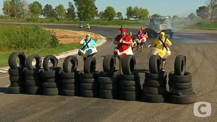 Родители со своими детьми будут проходить дистанцию в 1,5 км, по дороге отвечая на вопросы друг о друге. Они будут касаться детства и молодости партнера. Варианты ответов будут находиться рядом – на пазлах. Задача участника – выбрать пазл с правильным ответом, и донести его к финишу. Если оба партнера принесут все правильные ответы, то смогут сложить логотип шоу. Родителям и детям нужно быть очень быстрыми, ведь за ними будут ехать поливальные машины, которые с легкостью сотрут написанное мелом. А также хорошенько усложнят путь толстячков. Ведь чем ближе поливальная машина, тем больше воды в подгузниках.