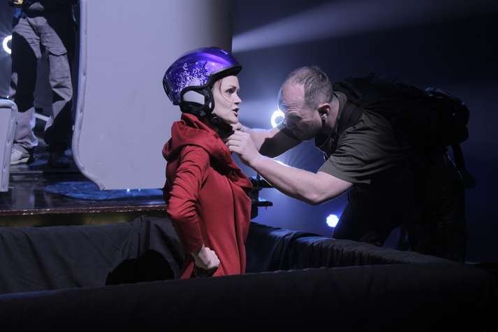 «Участник поднимается на подиум, принимает позу, которая вырезана в шаблоне, затем дефилирует и в конце воссоздает начальную позировку и замирает в ней. В это время на него катится та самая конструкция–шаблон. И только если герой смог в точности повторить позу, он впишется в силуэт. Если нет – конструкция столкнет его вниз, в контейнер с пластиковыми шариками. Надеемся, что участники воспримут нашу задумку с юмором, и не будут на нас сердиться. Ничего травмоопасного в этом задании нет. Я лично испытала все на себе. Если немного уйти в философию, то идея такова: если в модельном бизнесе ты не можешь твердо стоять на ногах и быстро реагировать на неожиданные обстоятельства, то быстро «слетишь» с вершины карьеры»,– объяснил задумку испытания руководитель проекта Алена Звирык.