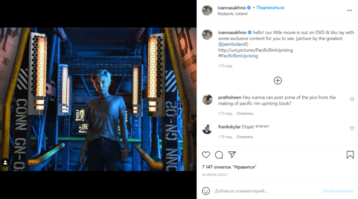 Напомним, Иванна Сахно снималась в таких лентах как ситком «Леся+Рома», биографический фильм «Иван Сила», блокбастер «Тихоокеанский рубеж: Восстание», комедия «Шпион, который меня бросил», триллер «Пик страха». С 2013 актриса живет и работает в США.