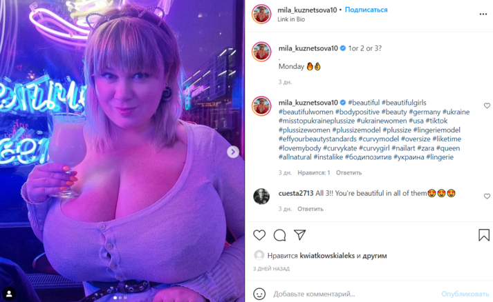 Украинская модель с самой большой грудью Мила Кузнецова в интервью «Комсомольской правде» рассказала о неожиданной опасности, которая может подстерегать окружающих ее людей.