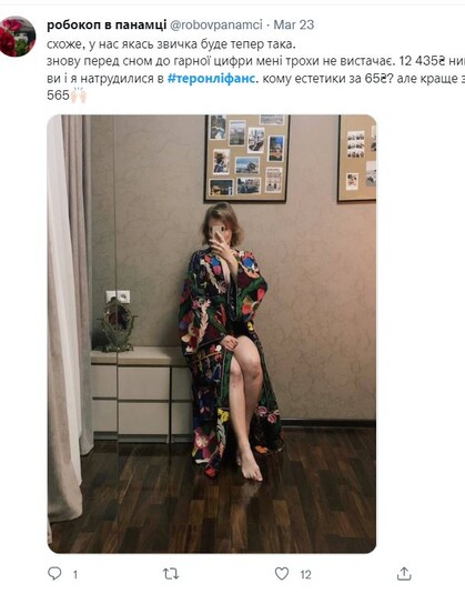 О своих успехах Насти отчитываются на странице в Twitter. В среднем в день им удается собрать около 200 тысяч гривен. Название Теронлифанс появилось от комбинации слов «терроборона» и «OnlyFans» (площадка-соцсеть, где можно показывать контент интимного характера за деньги).