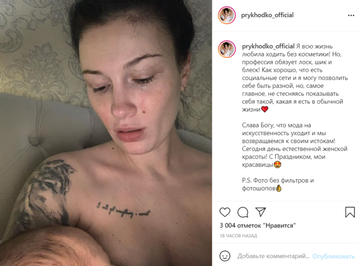 «Я всю жизнь любила ходить без косметики! Но, профессия обязует лоск, шик и блеск! Как хорошо, что есть социальные сети и я могу позволить себе быть разной, но, самое главное, не стесняясь показывать себя такой, какая я есть в обычной жизни», — отметила Приходько.