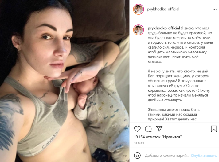 По этому случаю у себя в Instagram знаменитость разместила фотографию, где предстала без макияжа. Фотография также не была обработана фотошопом. На снимке уставшая Настя кормит маленького сына грудью.