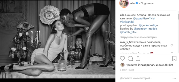 Топ-модель Алла Костромичова снялась в рекламной кампании нового аромата от Жана Поля Готье Scandal. Снимками с рекламной фотосессии, на которых модель позирует без белья, украинка поделилась в своем Instagram.