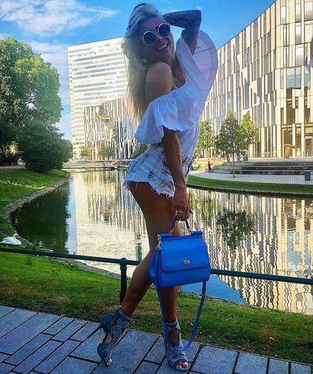 После соревнований наша соотечественница похвасталась призом и подкаченной попой, соответствующие фото опубликованы на ее странице в Instagram. В кадре телеведущая стоит в лиловом бикини, украшенном камушками, на высоких каблуках.