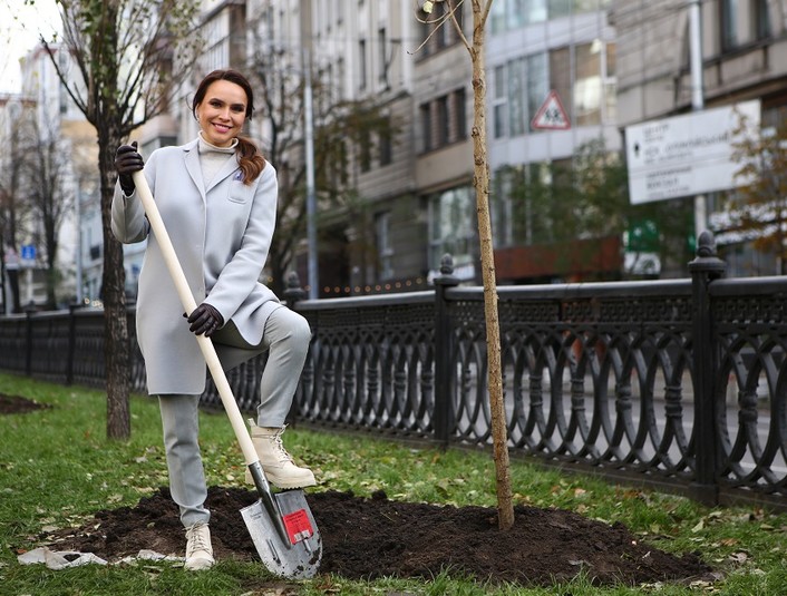 Одной из первых взялась за лопату ведущая программы «Утро с Интером» Анастасия Даугуле. В студенческие годы она перекопала не один десяток квадратных метров. Тогда это были археологические раскопки, а теперь ведущая высадила первое в своей жизни дерево.