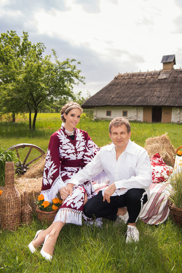 Ольга Сумская пряла пряжу в платье с 3D-вышивкой из сиреневого хлопка, отметив, что научилась этому еще в детстве. Татьяна Литвинова несла коромысло с ведрами, а Евгений Клопотенко замешивал тесто.