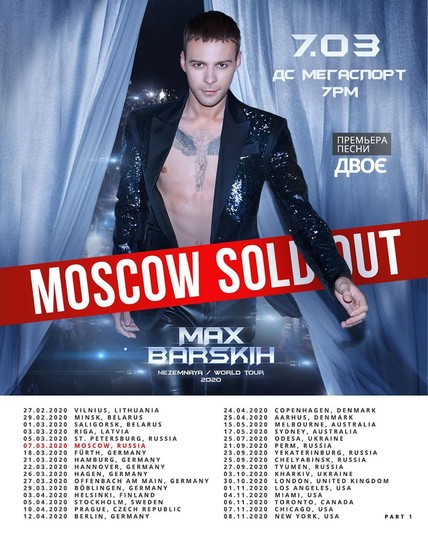 Популярный украинский певец Макс Барских, который на днях выпустил трек на украинском, выступил в стране-агрессоре России. Чтобы послушать поп-звезду, в московский Мегаспорт пришло свыше 14 000 тысяч поклонников. Концерт стал частью мирового тура Nezemnaya2020.