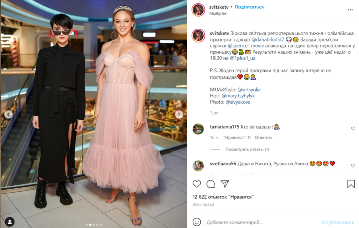 «Вчера был мой дебют в роли ведущей на премьере ленты о принцессе Диане – «Спенсер». Я стала на один день звездным репортером и взяла интервью у троих звездных гостей. Было действительно волнительно, потому что я привыкла давать интервью, а не брать. Но это был невероятный опыт, мне очень понравилось. У меня был образ принцессы, который уместно подходит к фильму», – написала Дарья Билодид.