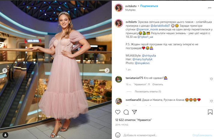 Бронзовая призер Олимпийских игр 2020 года Дарья Билодид стала на этой неделе репортером популярной программы «Светская жизнь».