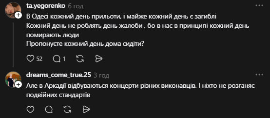 - «Люди купили квитки і планували цей день… Якщо вам не норм, то іншим норм».