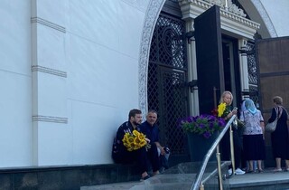 Как сообщает журналист ТСН.ua, пока люди собираются, чтобы провести в последний путь актрису. Прах Русланы Писанки, который в Киев привез муж актрисы Игорь Исаков, стоит позади портрета артистки.