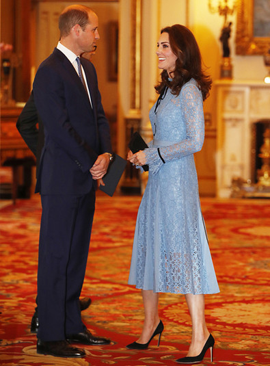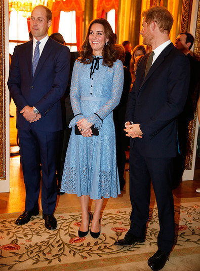 Вместе с герцогиней Кембриджской на приеме для представителей благотворительных организаций, которые работают в секторе психического здоровья Великобритании, также присутствовали принц Гарри и принц Уильям. Последний очень трепетно вел себя с супругой, стараясь постоянно находиться рядом, а Кейт, в свою очередь, была по традиции веселой и непринужденной, блистая в кружевном платье своего любимого бренда Temperley London, пишет журнал Hello!.