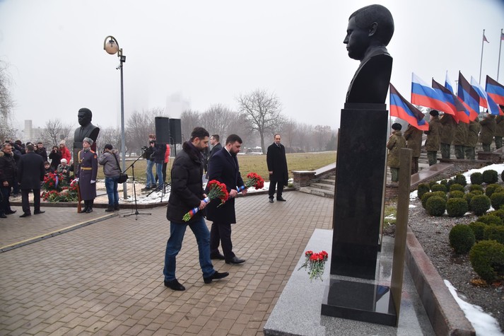 Как сообщается, новый памятник открыли возле бюста убитому главе т.н. «ДНР» Александру Захарченко. В мероприятии участвовал нынешний руководитель «ДНР» Денис Пушилин.