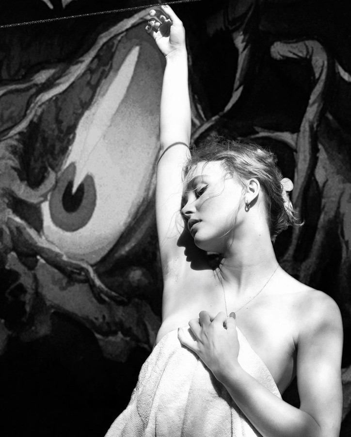Так, автор снимков разместил в сети ранее неопубликованные черно-белые фото, на которых 21-летняя модель позирует топлес. При этом обнаженные части тела она прикрыла белым полотенцем. Образ Депп был дополнен минималистичными серьгами и подвеской. «Скучаю по любимому персонажу моих историй», — подписал Бантинг пост, который набрал больше 14 тысяч лайков.