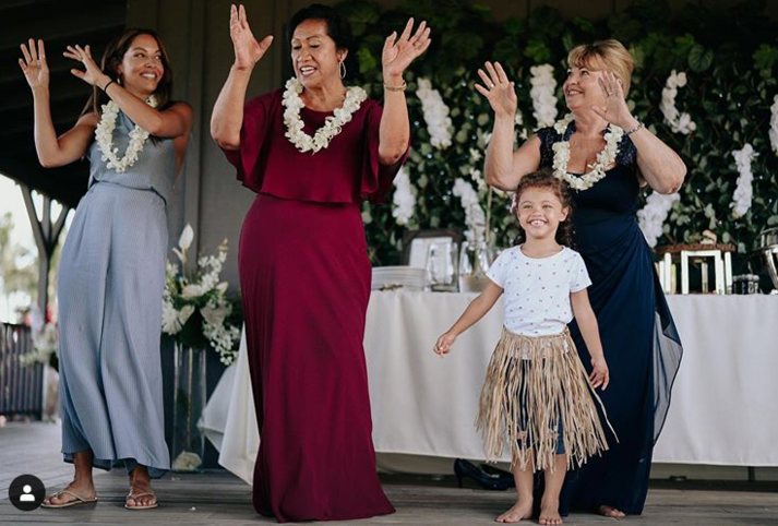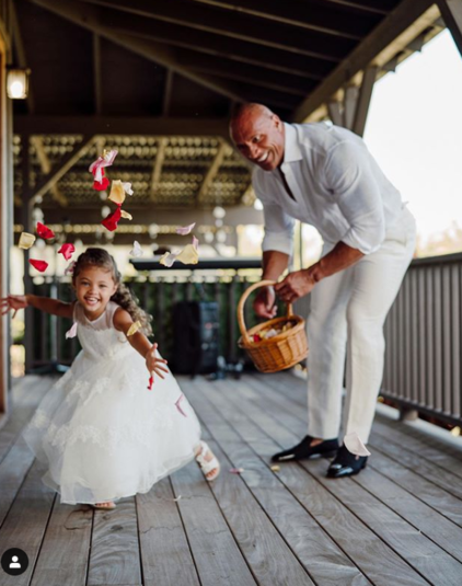 Дуэйн и Лорен вместе уже 12 лет и воспитывают двоих детей: трехлетнюю дочь Жасмин и годовалую Тиану. На свадебных снимках родителей видно, что обе девочки рассыпали лепестки цветов во время церемонии и радовались вместе с другими членами семьи. Хэшиан опубликовала в Instagram кадры с мамами: своей и мамой Дуэйна.