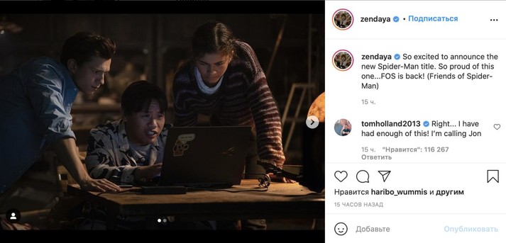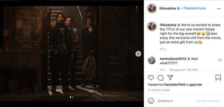 Том Холланд, Зендея и Джейкоб Баталон в своих соцсетях показали кадры из новой части трилогии о приключениях Человека-паука — «Человек-паук: Нет пути домой». Каждый из трех актеров раскрыл название предстоящего фильма, но их варианты не сошлись.