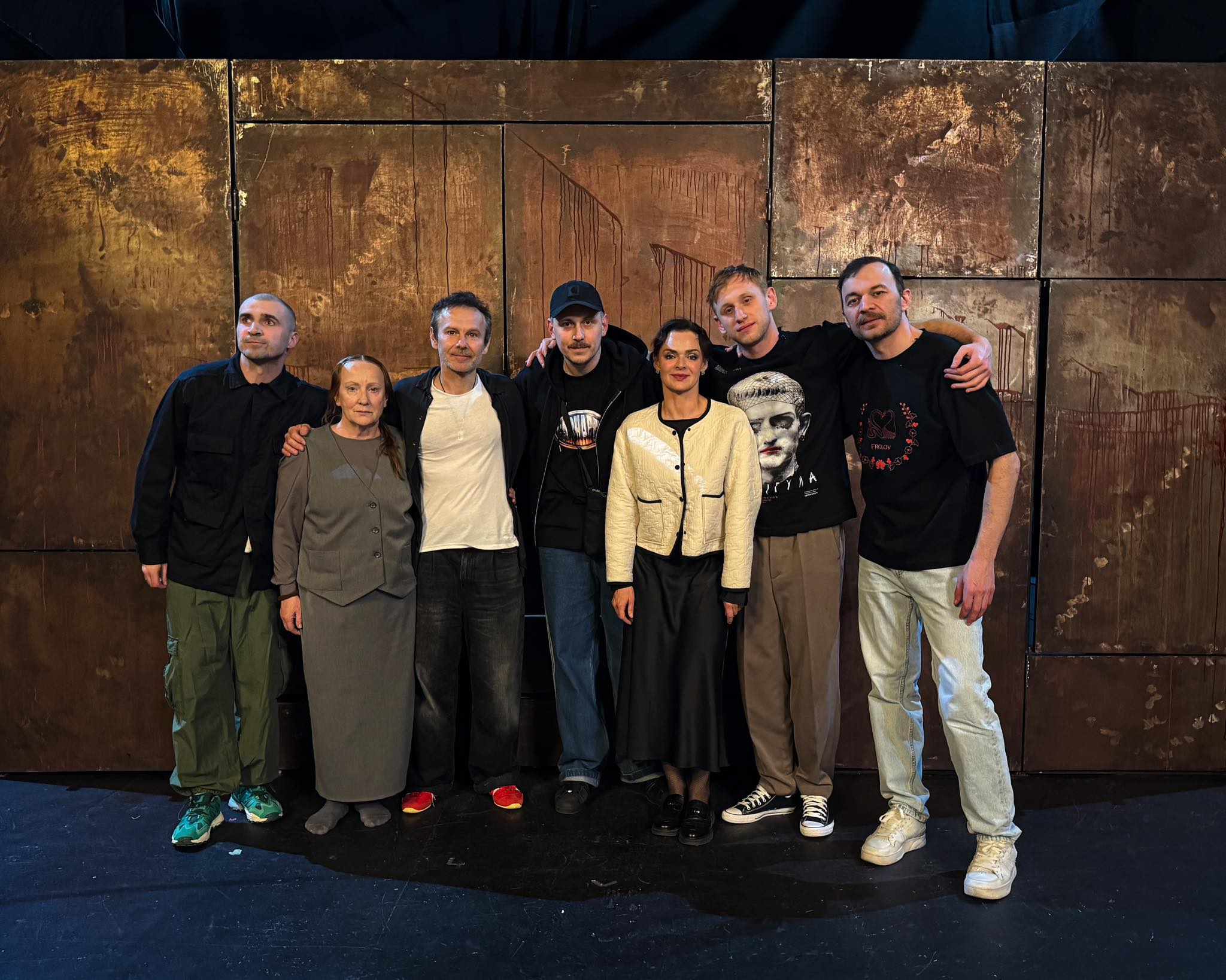«На цьому фото: в театрі Франка з акторами вистави «Калігула» і їхнім безмежно талановитим режисером Іваном Уривським. Крута вистава, як і все, що вони роблять», – додав артист.