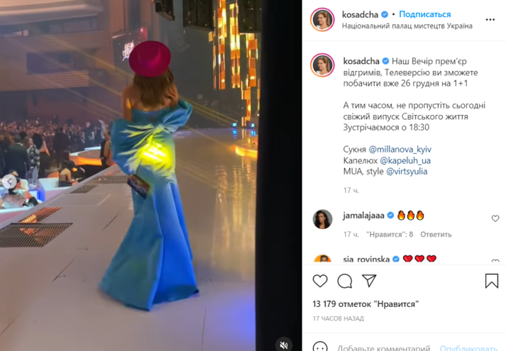Популярная украинская телеведущая Катя Осадчая вечером в своем Инстаграме опубликовала фото и видео со съемок своей авторской программы «Вечер премьер с Екатериной Осадчей». На снимке и роликах 38-летняя ведущая предстала в голубом платье с открытыми плечами и высоким разрезом, а также в малиновых шляпе и туфлях.