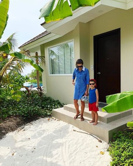 В свою очередь супруга телеведущего публикует снимки детей и отмечает, что им очень нравится отдых и белоснежный песок.