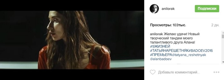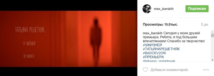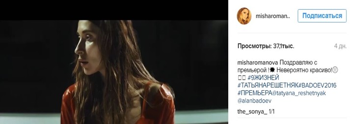 Свое восхищение творческим тандемом Бадоев-Решетняк выказала и Ани Лорак, разместив в своем Instagram тизер клипа, набравший свыше 100 тысяч просмотров. Группа «ВИА Гра» в полном составе поздравила певицу и режиссера с «невероятно красивой» премьерой. А Вера Брежнева призналась: «Уже третий день напеваю… Умничка, Татьяна Решетняк!».
