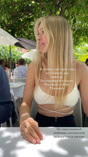 На снимках сестры изображена в белом коротком топе и черной юбке. Вера сидит на открытой площадке одного из ресторанов. «За 105 дней отвыкла от себя. Война изменила отношение ко всему. Отражение в зеркале не волновало. Но вдруг вчера на фото, сделанном сестрой, увидела себя со стороны… Мы уже никогда не будем такими, как раньше, и я уже понимаю, что становлюсь другой, новой. Теперь у этих глаз, морщин, седины нет желания прятаться за фильтрами. Желания больше понравиться, но есть желание жить», – подписала фото Брежнева. Артистка добавила, что сейчас чувствует себя настоящей, как никогда, «без панцирей и масок».