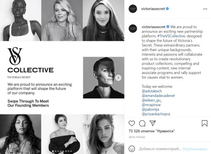 Американская марка нижнего белья Victoria’s Secret опубликовала фото новых «ангелов», которые будут сотрудничать с компанией. Пост появился на странице бренда в Instagram.