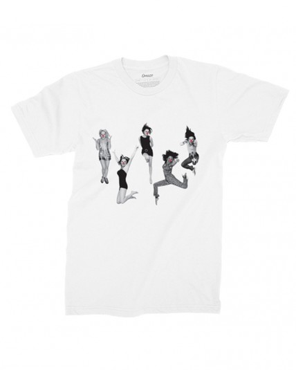 На эксклюзивных футболках герлз-бенд запечатлен с красными носами